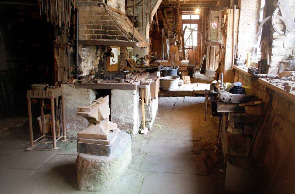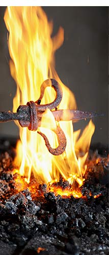![]() ![]() o: Markus Urban bei der Schmiedevorführung in der Wappenschmiede u: Glut in der Esse |